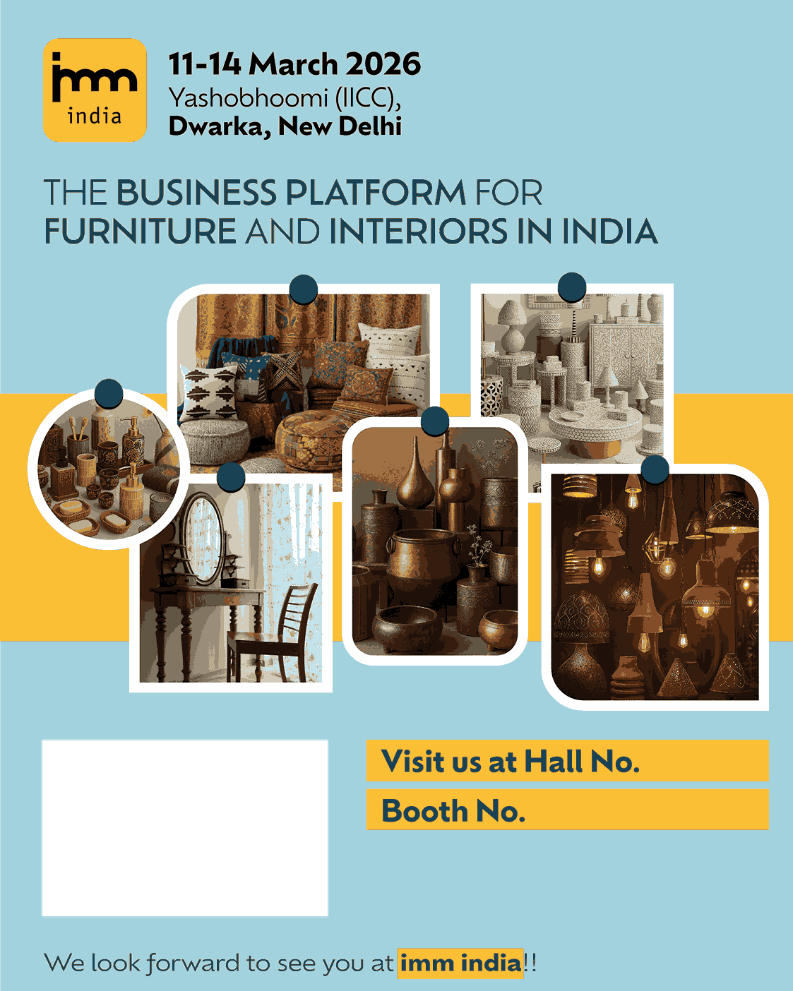 Make the most of your participation by inviting your network to visit your booth at imm India Download high-resolution creatives for WhatsApp invites, email signatures, and social media posts. Customize them as needed and spread the word to maximize your reach. Download the creatives below and start promoting today!